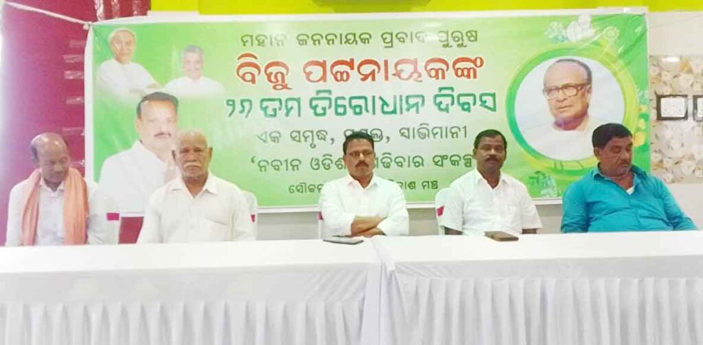 ୧୭ ଏପ୍ରିଲ୍ ,୨୦୨୩ (ଓଡ଼ିଶା ତାଜାନ୍ୟୁଜ ) ବ୍ରହ୍ମଗିରି :- ମହାନ ଜନନାୟକ ବିଜୁ ପଟ୍ଟନାୟକଙ୍କ ୨୬ତମ ଶ୍ରାଦ୍ଧବାର୍ଷିକ ଦିବସ ବ୍ରହ୍ମଗିରି ବ୍ଲକର ବ୍ରହ୍ମଗିରି ବଜାର ଠାରେ ବିକାଶ ମଞ୍ଚ ଅଧ୍ୟକ୍ଷ ତଥା ଜିଲ୍ଲା ପରିଷଦ ସଭ୍ୟ କୈଳାଶ ପରିଡ଼ାଙ୍କ ନେତୃତ୍ବରେ ପାଳନ କରାଯାଇଛି । ଏଥିରେ ବ୍ଲକର ସତାଧିକ ବିଜୁ ପ୍ରେମୀ ବଂଧୁ ମାନେ ଯୋଗଦେଇ ବିଜୁ ପଟ୍ଟନାୟକଙ୍କ ଆଦର୍ଶରେ ଅନୁପ୍ରାଣିତ ହୋଇ ସାହସୀ ଓ ସ୍ୱାଭିମାନି ହେବା ପାଇଁ ସପଥ ନେଇଥିଲେ । ମହାନ ଜନନାୟକ ବିଜୁ ପଟ୍ଟନାୟକଙ୍କ ଶ୍ରାଦ୍ଧଦିବସ । ଏହି ଅବସରରେ ତାଙ୍କ ପ୍ରତି ମୋର ଗଭୀର ଶ୍ରଦ୍ଧାଞ୍ଜଳି ଅର୍ପଣ କରୁଛି ।