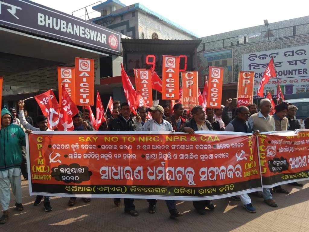 ଭୁବନେଶ୍ୱର (ଓଡିଶା ତାଜା ନିଉଜ୍) ଭୁବନେଶ୍ୱର 8.1.2020 :- ଦଫା ଦାବି ନେଇ ଏ.ଆଇ.ସି.ସି.ଟି.ୟୁ ପକ୍ଷରୁ ଆଜି ଭୁବନେଶ୍ୱର ରେଳ ଷ୍ଟେସନ, ରିଜର୍ଭ ବ୍ୟାଙ୍କ, ଏଚ୍ଡ଼ିଏଫ୍ସି ବ୍ୟାଙ୍କ, ଆଇଆଇସିଆଇ ବ୍ୟାଙ୍କ, ଇଣ୍ଡିଆନ ଓଭରସିଜ୍ ବ୍ୟାଙ୍କକୁ ବନ୍ଦ କରାଯାଇଥିଲା । ୧୨ ଦଫା ସମ୍ବଳିତ ଦାବିକୁ ମୋଦି ସରକାର ମାନି ନେବାକୁ ଏହି ବନ୍ଦ ଡ଼ାକରା ଦିଆଯଇଥିôଲା ବେଳେ ଦରଦାମ୍ ବୃଦ୍ଧି, ଏନ୍.ଆର.ପି. ଏନ୍.ଆର.ସିକୁ ବାତିଲ୍ କରିବା, ଲେବର କୋଡ଼ ସଂଶୋଧନ ବାତିଲ୍, ଶ୍ରମିକମାନଙ୍କ ସର୍ବନିମ୍ନ ମଜୁରୀ ୨୧ ହଜାର ଟଙ୍କା, ସ୍ଥାୟୀ ·କିରୀ ଓ ସାମାଜିକ ସୁରକ୍ଷା, ବ୍ୟାପକ ଘରୋଇକରଣ ବିରୁଦ୍ଧରେ ଆଜି ଏଆଇସିସିଟିୟୁର ସାଧାରଣ ସମ୍ପାଦକ ମହେନ୍ଦ୍ର ପରିଡ଼ା, କାର୍ଯ୍ୟକାରୀ ସଭାପତି ରାଧାକାନ୍ତ ସେଠି, ସିପିଆଇ (ଏମ୍ଏଲ୍) ଲିବରେସନର ରାଜ୍ୟ ସମ୍ପାଦକ ଯୁଧିଷ୍ଠିର ମହାପାତ୍ରଙ୍କ ନେତୃତ୍ୱରେ ଭୁବନେଶ୍ୱରର ବିଭିନ୍ନ ସ୍ଥାନ ପରିକ୍ରମା କରି ବନ୍ଦକୁ ସଫଳ କରିବା ଲାଗି ଜନସାଧାରଣଙ୍କୁ ଅନୁରୋଧ କରିଥିଲେ ।