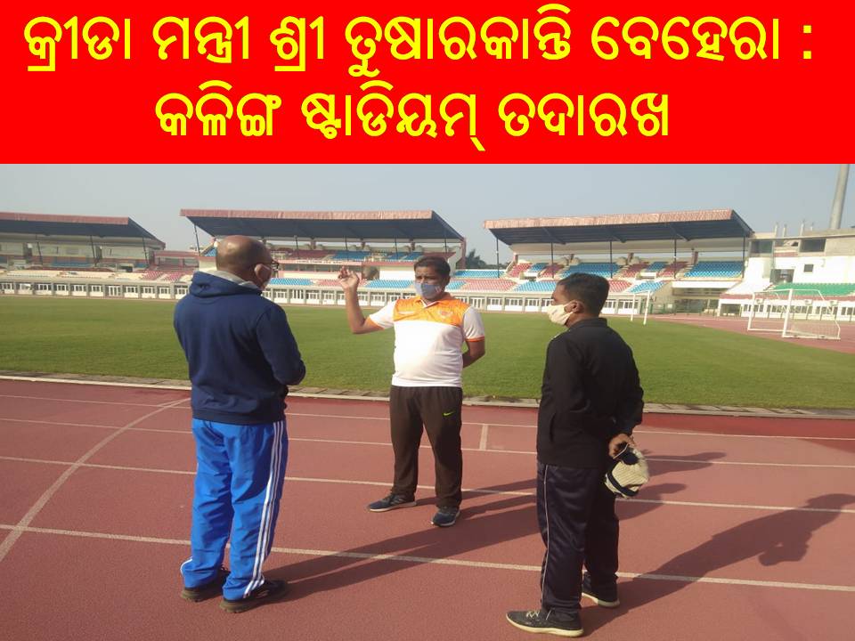 କ୍ରୀଡା ମନ୍ତ୍ରୀ ତୁଷାରକାନ୍ତି ବେହେରାଙ୍କ କଳିଙ୍ଗ ଷ୍ଟାଡିୟମ୍ ଉନ୍ନୟନ କାର୍ଯ୍ୟ ତଦାରଖ – ଭୁବନେଶ୍ୱର