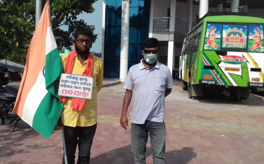 ରବିବାର ଶ୍ରୀ ଦାସ ଦୀର୍ଘ ୫ ହଜାର କିଲୋମିଟର ପଦଯାତ୍ରା କରି ହିଞ୍ଜିଳିକାଟୁରେ ପଂହଚିଥିଲେ । ଶ୍ରୀ ଦାସ ରବିବାର ସୁଦ୍ଧା ୧୭୪ ବ୍ଳକକୁ ପଦଯାତ୍ରା କରି ଦାବି ପତ୍ର ପ୍ରଦାନ କରି ସାରିେଏଣି । ହାତରେ ତ୍ରିରଙ୍ଗା ପତକା ଧରିବା ସହ ବେବକରେ ସ୍ୱତନ୍ତ୍ର ରାଜ୍ୟା ପାହ୍ୟା ଦାବି ସମ୍ବଳିତ ଲିଫ୍ାଲେଟ ଝୁଲାଇ ରାସ୍ତାରେ ଯାଉଥିବା ସମୟରେ ହିଞ୍ଜିଳିକାଟୁ ବସ ଟର୍ମିନାଲ ନିକଟରେ ପ୍ରେସକ୍ଳବ ସଭାପତି ପ୍ରିୟଦର୍ଶୀ ପଟ୍ଟନାୟକଙ୍କ ସମେତ ବିଭିନ୍ନ ସଙ୍ଗଠନ, ସ୍ୱେଛାସେବୀ ଅନୁଷ୍ଠାନ ପକ୍ଷରୁ ଶ୍ରୀ ଦାସଙ୍କ ଦାବିକୁ ମହତ୍ୱ ଜଣାଇବା ସହ ସ୍ୱାଗତ ସମ୍ବର୍ଦ୍ଧନା ଜଣାଇ ଉତ୍ସାହିତ କରିଥିଲେ । ପରେ ଶ୍ରୀ ଦାସ ସ୍ଥାନୀୟ ବ୍ଳକ କାର୍ଯ୍ୟାଳୟକୁ ଯାଇ ମହାମହିମ ରାଷ୍ଟ୍ରପତିଙ୍କ ଉଦ୍ଦେଶ୍ୟରେ ଏକ ଦାବି ପତ୍ର ବିଡ଼ିଓ ପ୍ରସନ କୁମାର ପାତ୍ରଙ୍କୁ ପ୍ରଦାନ କରିଥିଲେ । (ରିପୋର୍ଟ୍ : ଶେଷଦେବ ସାହୁ)