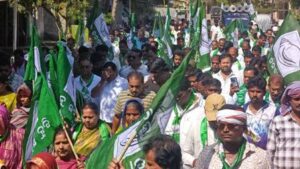 କୋରୁକୋଣ୍ଡା ଠାରେ ଚାଷୀଙ୍କ ଧାନ ବସ୍ତା ରଖି ରାସ୍ତାରୋକ ।