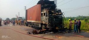 କିନ୍ତୁ ଡ୍ରାଇଭର ତାହା ଜାଣିପାରି ନଥିଲେ ! ନାଚୁଣୀ ଆଉଟ ପୋଷ୍ଟ ନିକଟରେ ଗାଡ଼ିଟି ହତୁ ହୁତୁ ହୋଇ ଯେତେବେଳେ ନିଆଁ ବାହାରିଥିଲା ସେତେବେଳେ ଗାଡ଼ି ଡ୍ରାଇଭର ଜାଣି ପାରିଥିଲେ ଯେ , ଗାଡ଼ି ରୁ ନିଆଁ ବାହାରୁଛି । ସଙ୍ଗେ ସଙ୍ଗେ ଡ୍ରାଇଭର ଛକର ରାସ୍ତା ପାର୍ଶ୍ବରେ ଗାଡ଼ିଟି ରଖିଦେଇ ଗାଡ଼ିରୁ ଡ୍ରାଇଭର ଓ ହେଲପର ଡେଇଁ ପଡି ନିଜର ଜୀବନ ବଞ୍ଚାଇ ଥିଲେ l ଗାଡ଼ିଟିର ଆଗ ପଟ ସମ୍ପୂର୍ଣ୍ଣ ଭାବରେ ଜଳି ଯାଇ ନଷ୍ଟ ହୋଇ ଯାଇ ଥିବାର ଜଣାପଡ଼ିଛି । ଘଟଣା ସ୍ଥଳରେ ପୋଲିସ ପହଞ୍ଚି ତଦନ୍ତ ଜାରି ରଖିଛି ।