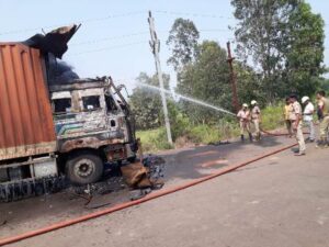 ୧୪ ଅକ୍ଟୋବର ୨୦୨୩ (ଓଡ଼ିଶା ତାଜା ନ୍ୟୁଜ ) ବାଲୁଗାଁ/ଏନଏନଏସ :-> ଖୋର୍ଦ୍ଧା ଜିଲ୍ଲା ଅନ୍ତର୍ଗତ ବାଣପୁର ବ୍ଲକ ଅଧୀନ ନାଚୁଣୀ କଉଡିଖଣି ଛକ ନିକଟରେ ଆଜି ଭୋର ସମୟରେ ଏକ ଅଘଟଣ ଘଟିଯାଇଛି l ଏକ ଦିଆସିଲ ବୋଝେଇ ହୋଇ ଯାଉଥିବା ଚଳନ୍ତା ଟ୍ରକରେ ନିଆଁ ଲାଗିଯାଇଥିଲା । ସୂଚନା ଅନୁଯାଇ ତାମିଲନାଡୁ ରୁ ଜସ୍ମନପୁର ଟାଟା ଅଭିମୁଖେ ଯାଉଥିବା ଏକ ମାଲବାହି ଟ୍ରକରେ ୧୬ ନମ୍ବର ଜାତୀୟ ରାଜପଥ କଉଡିଖଣି ଛକ ନିକଟରେ ହଠାତ୍ ଚଳନ୍ତା ଟ୍ରକରେ କୈାଣସି କାରଣ ବଶତଃ ନିଆଁ ଲାଗିଯାଇଥିଲା ।
