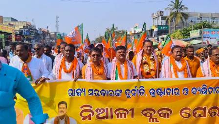 ବିଭିନ୍ନ ଦୁର୍ନୀତି, ଭ୍ରଷ୍ଟାଚାର ଓ ବ୍ୟଭିଚାର ବିରୋଧ କରି ବିଜେପି ପକ୍ଷରୁ ନିଆଳି ବ୍ଲକ ଘେରାଉ ଓ ବିକ୍ଷୋଭ