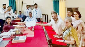 3th May, 2024 (Odisha Tazanews) New Delhi  :->  Mother Sonia Gandhi and sister Priyanka Gandhi Vadra by his side, Congress leader Rahul Gandhi today field nomination papers for the Raebareli Lok Sabha seat in Uttar Pradesh. Congress president Mallikarjun Kharge and Priyanka Gandhi’s husband Robert Vadra were also with Mr Gandhi as he submitted the papers at the district magistrate’s office.