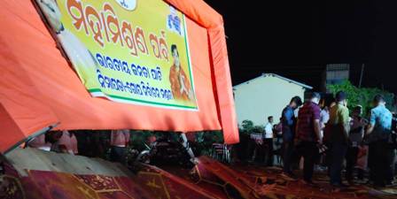 ଖୁସି ହୋଇ ବିଜେପି ରେ ନିମାପଡ଼ା ବିଧାୟିକା ପ୍ରାର୍ଥୀନୀ ଶ୍ରୀ ମତୀ ପ୍ରଭାତୀ ପରିଡ଼ା ଙ୍କ ନେତୃତ୍ବରେ ଦଳୀୟ ଉତ୍ତରୀୟ ପରିଧାନ କରି ମିଶିଥିଲେ । ଏହି ମିଶ୍ରଣ ପର୍ବ ଚାଲିଥିବା ବେଳେ ହଠାତ୍ ମଞ୍ଚଟି ଭାଙ୍ଗି ଯାଇଥିଲା । ଏଥିରେ କାହାରି କିଛି କ୍ଷତି ହୋଇନଥିବାବେଳେ, ଆବଶ୍ୟକ ଅନୁଯାୟୀ ଅଧିକ କର୍ମୀ ମଞ୍ଚ ଉପରକୁ ଯାଇଥିବାରୁ ମଞ୍ଚ ନିଜର ଭାରସାମ୍ୟ ହରାଇ ଭାଙ୍ଗି ଯାଇଥିଲା ।