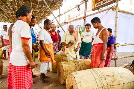 ଦୋଳବେଦୀ ଅସ୍ଥାୟୀ କମାର ଶାଳ ରେ ତିନି ରଥ ଓଝା ସେବକ ମାନେ ତିନି ତିନୋଟି ଚକା ପାଇଁ ଅର୍ କଣ୍ଟା ନିର୍ମାଣ କରିବା ସହ ତିନିରଥ ର ଦୁଇ ଦୁଇ ଟି ତୁମ୍ଭ ପାଇଁ ପନ୍ଦାରି ବଳା ନିର୍ମାଣ ଶେଷ କରିଛନ୍ତି |ଉକ୍ତ ପନ୍ଦାରି ବଳା ଗୁଡ଼ିକର ମଠ। କାମ ବାକି ରହିଛି ।ରଥଖଳା ରେ ମୋଟ ୯୭ ଜଣ ସେବକ କାର୍ଯ୍ୟରତ ଥିଲେ |