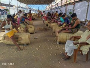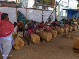 ୧୬ ମେ , ୨୦୨୪ (ଓଡ଼ିଶା ତାଜା ନ୍ୟୁଜ୍ ) ପୁରୀ :-> ସକାଳ ୮ ଟା ରେ ରଥ ନିର୍ମାଣକାରୀ ସେବକ ମାନେ ରଥ ଖଳା ଠାରେ ଉପସ୍ଥିତ ହୋଇ ନିର୍ମାଣ କାର୍ଯ୍ୟ ଆରମ୍ଭ କରିଥିଲେ ।ତିନିରଥର ୪୨ ଗୋଟି ତୁମ୍ବରେ ସୂତା ବାଡିଆ କାର୍ଯ୍ୟ ଶେଷ ହୋଇଛି | ମଧ୍ୟାହ୍ନ ବିରତି ପରେ ତିନିରଥ ମୁଖ୍ୟ ମହାରଣାଙ୍କ ଦ୍ଵାରା ତୁମ୍ବ ବିନ୍ଧ ଅନୁକୂଳ ଓ ପୁଜ ସମ୍ପନ୍ନ ହୋଇଥିଲା |