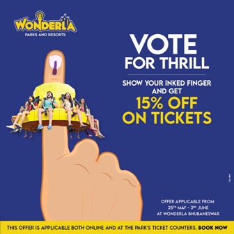ୱଣ୍ଡେର୍ଲାରେ ଆମେ ନିର୍ବାଚନ ପ୍ରକ୍ରିୟାରେ ଅଂଶଗ୍ରହଣ କରିବା ଏବଂ ସେମାନଙ୍କର ଭୋଟ ଦେବାର ଅଧିକାର ସାବ୍ୟସ୍ତ କରିବ ନିମନ୍ତେ ପ୍ରତ୍ୟେକ ବ୍ୟକ୍ତିବିଶେଷଙ୍କୁ ପ୍ରବର୍ତ୍ତାଇବା ପ୍ରୟାସଗୁଡିକୁ ସମର୍ଥନ କରିବା ନିମନ୍ତେ ଉତ୍ସର୍ଗୀକୃତ ରହିଛୁ ।” ୱଣ୍ଡେର୍ଲା ପରିଦର୍ଶକଙ୍କୁ ସେମାନଙ୍କର ଟିକେଟ ଅନ୍ଲାଇନ ୱେବସାଇଟ https://www.wonderla.com/ ରେ ଅଗ୍ରୀମ ବୁକ୍ କରିବା ଅଥବା ୦୬୭୪ – ୬୬୪୦୩୦୦ ରେ ଯୋଗାଯୋଗ କରିବାକୁ ଉତ୍ସାହିତ କରୁଛି ।