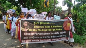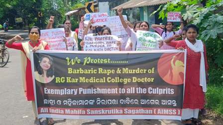 ୨୦ ଅଗଷ୍ଟ,୨୦୨୪ (ଓଡ଼ିଶା ତାଜା ନ୍ୟୁଜ୍ ) ଜଗତସିଂହପୁର :-> ଆର. ଜି. କର ମେଡିକାଲ କଲେଜ ର ଡାକ୍ତରୀ ଛାତ୍ରୀଙ୍କୁ ଗଣ ଦୁଷ୍କର୍ମ ଓ ହତ୍ୟା ରେ ସମ୍ପୃକ୍ତ ସମସ୍ତ ଦୋଷୀଙ୍କୁ ଦୃଷ୍ଟାନ୍ତ ମୂଳକ ଶାସ୍ତି ବିଧାନ, ଉତ୍ତରା ଖଣ୍ଡ ନର୍ସଙ୍କୁ ଦୁଷ୍କର୍ମ ଓ ହତ୍ୟା କରିଥିବା ଦୋଷୀଙ୍କୁ କଠୋର ଶାସ୍ତି ବିଧାନ, ସର୍ବତ୍ର ନାରୀ -ଶିଶୁକନ୍ୟା ମାନଙ୍କ ସୁରକ୍ଷା ସୁନିଶ୍ଚିତ କରିବା, ଅଶୀଳତା -ଅପସଂକୃତି -ମଦ ମାଦକ ଦ୍ରବ୍ୟର ପ୍ରଚାର ପ୍ରସାର ବନ୍ଦ କରିବା ଦାବିରେ ମଙ୍ଗଳ ବାର ଅଲଇଣ୍ଡିଆ ମହିଳା ସାଂସ୍କୃତିକ ସଂଗଠନ ପକ୍ଷରୁ ବିରିଡି ଛକ ଠାରେ ଏକ ପ୍ରତିବାଦ କାର୍ଯ୍ୟକ୍ରମ ଅନୁଷ୍ଠିତ ହୋଇ ଯାଇଛି l
