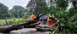 ନିଆଳି ପୋଖରୀଗାଁରେ ବାତ୍ୟା ପ୍ରଭାବରେ ରାସ୍ତାଉପରେ ଉପୁଡି ପଡ଼ିଲା ବିରାଟକାୟ ଗଛ