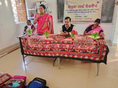 ସରପଞ୍ଚ ନିରଞ୍ଜନ ସେଠୀ ଙ୍କ ପୌରହିତ୍ୟରେ ଅନୁଷ୍ଠିତ ସଭାରେ ପ୍ରଧାନ ଶିକ୍ଷୟିତ୍ରୀ ଭାରତୀ ମହାରଣା, ଶିକ୍ଷୟତ୍ରୀ ତନ୍ମୟା ପ୍ରିୟଦର୍ଶିନୀ ରାଉତ, ଓ ମମତା ମଲିକଙ୍କ ସହ ଅଙ୍ଗନବାଡି କର୍ମୀ ସୁପର୍ଣ୍ଣl ପଣ୍ଡା,