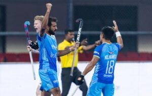 Germany began the third quarter with more urgency and it needed an instinctive save from Pathak to deny Prinz a goal in the 32nd minute. Pathak was called into action a couple of minutes later as he denied Peillat a penalty corner with a superb save with his foot. India had a big chance to double their advantage towards the end of a cagey third quarter. However, Stadler pulled off an incredible double save to deny Sukhjeet Singh and Vivek Sagar Prasad. The Indian defence was tested early in the fourth quarter as Germany won a penalty corner in the 46th minute. Karkera did well to save Peillat’s drag-flick. India won a penalty corner two minutes later but Amit Rohidas sent his drag-flick wide.