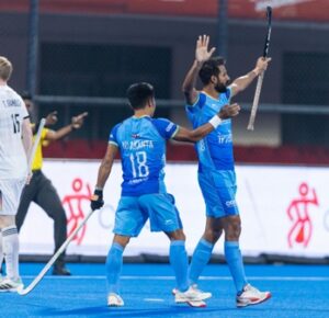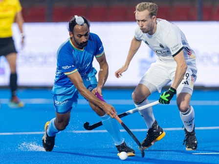 19th Feb, 2025 (Odisha Tazanews) Bhubaneswar :- India won their second match in the FIH Hockey Pro League 2024-25 (Men) season on Wednesday after beating World Champions Germany 1-0 at the Kalinga Hockey Stadium in Bhubaneswar. Gurjant Singh scored the only goal of the match as India climbed to seventh in the standings. It was a good response from India after they had succumbed to a 4-1 loss to Germany on Tuesday. The Indian defence, marshalled by Captain Harmanpreet Singh, put in a solid display to secure an important win.After a bright start, India took the lead four minutes into the match as Gurjant Singh scored in back-to-back matches.