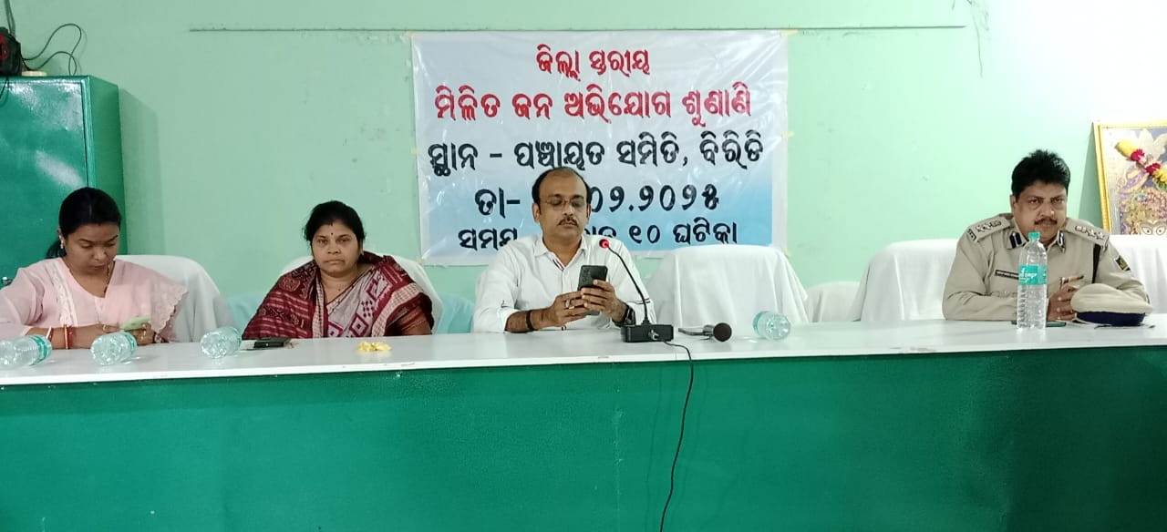 ୨୪ ଫ୍ରେବୁଆରି ୨୦୨୫ (ଓଡ଼ିଶା ତାଜା ନ୍ୟୁଜ୍) ଜଗତସିଂହପୁର :- ବିରିଡି ବ୍ଲକ କାର୍ଯ୍ୟାଳୟ ଠାରେ ଜଗତସିଂହପୁର ଜିଲ୍ଲା ପ୍ରଶାସନ ପକ୍ଷରୁ ଯୁଗ୍ମ ଜନ ଅଭିଯୋଗ ଶୁଣାଣି ଶିବିର ସୋମବାର ଅନୁଷ୍ଠିତହୋଇଯାଇଛି l ଜିଲ୍ଲା ପ୍ରଶାସନର ବରିଷ୍ଠ ଅଧିକାରୀ ମାନେ ଉପସ୍ଥିତ ରହି ବିଭିନ୍ନ ଆପତ୍ତି ଅଭିଯୋଗର ଶୁଣାଣି କରିଥିଲେ l ମୋଟ 51 ଟି ଅଭିଯୋଗ ପଞ୍ଜିକୃତ ହୋଇଥିଲା l