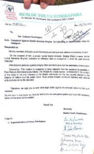 କେନ୍ଦ୍ରାପଡ଼ା ଜିଲ୍ଲା ପାଟକୁରା ଥାନା ଜଗଦଲପୁର ଅଂଚଳର ସଚିନ ସାମନ୍ତ ସିଂହାର (୨୪) ମିଳିଥିବା ସୂଚନା ଅନୁସାରେ ଅଭିଯୁକ୍ତ ସଚିନ ନିଜ ମୋବଇଲ ର ସୋସିଆଲ ମିଡିଆରେ ଇସଲାମ ଧର୍ମ (ଆଲ୍ହା)ଙ୍କୁ ଅପମାନିତ କରିଛି ଏବଂ ଖରାପ ଭାଷାରେ ଗାଳି ଦେଉଛି