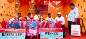 ଅତିଥି ମାନେ ଅନୁଷ୍ଠାନ ତରଫରୁ ଚମ୍ପିୟାନ ଟ୍ରଫି ଓ ନଗଦ ଦଶ ହଜାର ଟଙ୍କା ବଜରଙ୍ଗି ୱାରିଅର୍ ଦଳକୁ ପ୍ରଦାନ କରିବା ସହ ରନର୍ସଅପ୍ ରାଇଜୀଙ୍ଗ ଷ୍ଟାର ଦଳକୁ ଟ୍ରଫି ସହ ନଗଦ ସାତ ହଜାର ଟଙ୍କା ଅର୍ଥରାଶି ପ୍ରଦାନ କରିଥିଲେ। ମ୍ୟାନ ଅଫ ମ୍ୟାଚ୍ ଭାବେ ଲିଟୁ ସ୍ୱାଇଁ ପୁରସ୍କୃତ ହୋଇଛନ୍ତି । ଟୁର୍ଣ୍ଣାମେଣ୍ଟକୁ ମା ରାମଚଣ୍ଡୀ କ୍ରିକେଟ୍ କ୍ଳବର ସମସ୍ତ ସଦସ୍ୟ ମାନେ, ବାବୁଲି, ସନ୍ତ, ଲିଙ୍ଗା, ଜାପୁ, ମନ୍ତୁ, ରାକେଶ , ସୁବାଷ, ଚିନୁ , ସମୀର, ରିତେଶ ଆଦି ସହଯୋଗ କରିଥିଲେ । ଓମ୍ପେୟାର ଯାପୁ, ଗୁଡୁ ସୁନ୍ଦର୍ ଭାବରେ ମ୍ୟାଚ୍ ପରିଚାଳନା କରିଥିଲେ। ବଲହା ସାର ସୁନ୍ଦର ଭାବରେ ମଞ୍ଚ ପରିଚାଳନା କରିଥିଲେ।