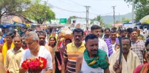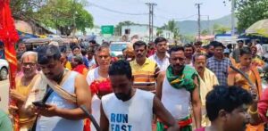 ବାଲିଗୁଡା (ଓଡ଼ିଶା ତାଜା ନ୍ୟୁଜ୍) ବାଲିଗୁଡା :- କନ୍ଧମାଳ ଜିଲ୍ଲା ବାଲିଗୁଡା ଅଞ୍ଚଳର ଅଧିଷ୍ଠାତ୍ରୀ ଦେବୀ ମା ‘ପାଟଖଣ୍ଡା ଠାକୁରାଣୀଙ୍କ ଦ୍ବିବାର୍ଷିକ ଯାତ୍ରା ପାଇଁ ଗାନ୍ଧୀ ଛକ ସ୍ଥିତ ମା ‘ବରାଳ ଦେବୀ ମନ୍ଦିର ଅସ୍ଥାୟୀ ମଣ୍ଡପ ବର୍ତ୍ତମାନ ଚଳ ଚଞ୍ଚଳ ହୋଇ ଦିନକୁ ଦିନ ଭକ୍ତ ଙ୍କ ସଂଖ୍ୟା ବୃଦ୍ଧି ପାଇବାରେ ଲାଗିଛି l ଏହି ଯାତ୍ରା ମଇ ୬ ତାରିଖରୁ ଆରମ୍ଭ ହୋଇ ଆଜି ଅଷ୍ଟମ ଦିନରେ ପହଞ୍ଚି ଥିବା ବେଳେ ମଙ୍ଗଳବାର ପଞ୍ଚମ ନଗର ଭ୍ରମଣ ଆରମ୍ଭ ହୋଇଥିଲା l ଏହା ଜୁନ ୫ ତାରିଖରେ ଶେଷ ହେବ l ଏକ ମାସ ବ୍ୟାପୀ ମା’ ଅସ୍ଥାୟୀ ମଣ୍ଡପରେ ଭକ୍ତଙ୍କୁ ଦର୍ଶନ ଦେବେ। ଏ ନେଇ ସମଗ୍ର ବାଲିଗୁଡା ସହର ଉତ୍ସବମୁଖର ହୋଇଉଠିଛି।