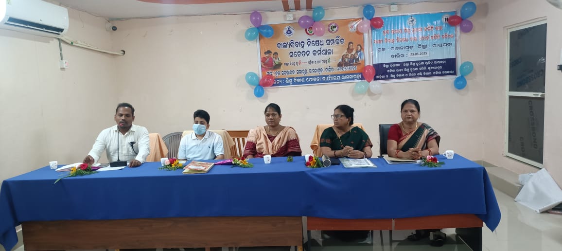 ରାମନାଗୁଡା (ଓଡ଼ିଶା ତାଜା ନ୍ୟୁଜ୍) :- ରାୟଗଡା ଜିଲ୍ଲା ରାମନାଗୁଡା ପଞ୍ଚାୟତ ସମିତି କାର୍ଯ୍ୟାଳୟ ସମ୍ମିଳନୀ କକ୍ଷରେ ବ୍ଲକ ସ୍ତରୀୟ ବାଲ୍ୟ ବିବାହ ସଚେତନତା ବା ଶିଶୁ ପାଇଁ ଦିନଟିଏ କାର୍ଯ୍ୟକ୍ରମ ଅନୁଷ୍ଠିତ ହୋଇଥିଲା। ରାମନାଗୁଡା ସମନ୍ୱିତ ଶିଶୁ ବିକାଶ ଯୋଜନା ପକ୍ଷରୁ ଅନୁଷ୍ଠିତ ଏହି କାର୍ଯ୍ୟକ୍ରମ ରେ ପ୍ରତିମା ରାଣୀ ଦାସ ପିଇଓ, କଳ୍ପନା ଖୁଣ୍ଟିଆ ଗୁଣୁପୁର ପିଇଓ, ଅଞ୍ଜଳି ମହାପାତ୍ର ସିଡିପିଓ ରାମନାଗୁଡା, ସୁନିତା ବେହେରା ଥାନା ଅଧିକାରୀ ରାମନାଗୁଡା, ଡ: ପ୍ରଣତି ମହାପାତ୍ର ଗୋଷ୍ଠୀ ସ୍ୱାସ୍ଥ୍ୟ କେନ୍ଦ୍ର ରାମନାଗୁଡା, ପ୍ରମୁଖ ମଞ୍ଚାସୀନ ହୋଇଥିବା ବେଳେ ଏଥିରେ ଅତିରିକ୍ତ ଗୋଷ୍ଠୀ ଶିକ୍ଷା ଅଧିକାରୀ ,, ସରକାରୀ ଉଚ୍ଚ ମାଧ୍ୟମିକ ବିଦ୍ୟାଳୟ ଶିକ୍ଷକ, ବାଳିକା ଉଚ୍ଚ ବିଦ୍ୟାଳୟ ପାଳୁପାଇ ଶିକ୍ଷକ, ଯୋଗ ଦେଇଥିଲେ।