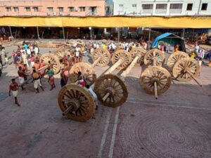 ପ୍ରତି ରଥର ଧ୍ବଜବତା କାର୍ଯ୍ୟ ଶେଷ ହୋଇଛି । ନନ୍ଦିଘୋଷ ଓ ତାଳଧ୍ବଜ ରଥର ଦୁଇଟି ପୋଲ ଗୟଳ ଚଉପଟ କାମ ଶେଷ ପର୍ଯ୍ୟାୟରେ ପହଞ୍ଚିଛି । ଦର୍ପଦଳନ ରଥର ୨୦ ଫୁଟିଆ ଧୂଳି ଦଣ୍ଡା ଚଉପଟ ଓ ଗୋଲେଇ କାର୍ଯ୍ଯ ଶେଷ ହୋଇଛି ।