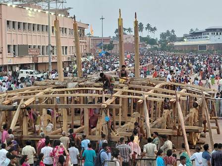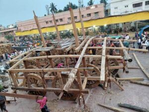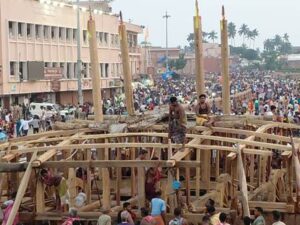 ପୁରୀ (ଓଡ଼ିଶା ତାଜା ନ୍ୟୁଜ୍) ପୁରୀ :- ଆଜି ରଥ ନିର୍ମାଣର ୩୯ ତମ ଦିବସରେ ରଥ ନିର୍ମାଣକାରୀ ସେବକ ମାନେ ରଥ ଖଳା ଠାରେ ସକାଳ ଘ.୮.୦୦ ଟିକା ପୂର୍ବରୁ ଉପସ୍ଥିତ ହୋଇ ଉପସ୍ଥାନ ଦେବା ସହ ମୁଖ୍ୟ ମହାରଣାଙ୍କ ମାର୍ଗ ଦର୍ଶନ ରେ ନିର୍ମାଣ କାର୍ଯ୍ୟ ଆରମ୍ଭ କରିଥିଲେ। ରଥ ନିର୍ମାଣ ଅଗ୍ରଗତି (ଗତକାଲି ସୁଦ୍ଧା ତିନିରଥ ର ଉଭୟ ପାର୍ଶ୍ଵରେ ତିନୋଟି ଲେଖାଏଁ ପୋଲ ଗୟଳ ମୋଡାଯାଇ, ଅନୁକୂଳ ପୂଜା ସହ ତିନି ରଥର ଚାରି ନାହାକା ଉଠିବା ସହ,ତିନି ରଥରେ ଗୋଟିଏ ଗୋଟିଏ ଛନ୍ଦା ଗୟଳ ମୋଡା ଯାଇଥିଲା….)