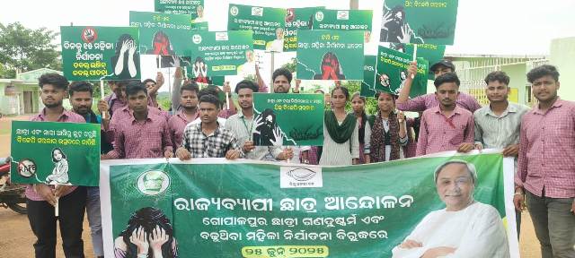 ଛାତ୍ର ଉପସଭାପତି ଦିବ୍ୟଜ୍ୟୋତି ମହାପାତ୍ର, ଜିଲ୍ଲା ସମ୍ପାଦକ ରଞ୍ଜନ ଦାସ l ରହି ସରକାରଙ୍କ ବିରୁଦ୍ଧରେ ବିଭିନ୍ନ ନାରାବାଜୀ ଦେଇଥିଲେ । ଏହି କାର୍ଯ୍ୟକ୍ରମରେ ୨ଶହରୁ ଉର୍ଦ୍ଧ୍ଵ ଛାତ୍ର ଯୁବକ ଯୋଗଦେଇଥିଲେ । ଏହି ଘଟଣାରେ ଶାନ୍ତିଶୃଙ୍ଖଳା ରକ୍ଷା କରିବାପାଇଁ ପୋଲିସ ବାହିନୀ ଉପସ୍ଥିତ ରହିଥିଲେ ।