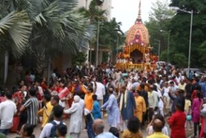 ଏହା ପରେ ଶାନ୍ତି ଶୃଙ୍ଖଳାର ସହିତ ରଥ ଟଣା କାର୍ଯ୍ୟ ଆରମ୍ଭ ହୋଇଥିଲା..। କସ୍ମୋପଲିସ୍ ପରିସର ଶତାଧିକ ଭକ୍ତଙ୍କର ଘଣ୍ଟ ହୁଳହୁଳି ହରିବୋଲ ଧ୍ୱନୀରେ ମୁଖରିତ ହୋଇ ଉଠିଥିଲା..। ସନ୍ଧ୍ୟା ସୁଦ୍ଧା ରଥ ଟଣା କାର୍ଯ୍ୟର ସମାପନ ହୋଇଥିଲା..।