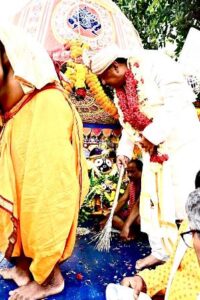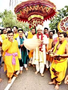 ଅପରାହ୍ନ ୩.୩୦ବେଳେ ଚାରିଠାକୁରଙ୍କର ପହଣ୍ଡି ବିଜେ କରାଯାଇଥିଲା।ପ୍ରଥମେ ଠାକୁର ସୁଦର୍ଶନ, ତାପରେ ବଡ଼ଭାଇ ବଳଭଦ୍ର, ପରେ ପରେ ଦେବୀ ସୁଭଦ୍ରା ଓ ଶେଷରେ ଜଗତର ନାଥ ଶ୍ରୀ ଜଗନ୍ନାଥଙ୍କୁ ସାହି ରୋଷଣୀ କରାଯାଇ ମନ୍ଦିର ସମ୍ମୁଖସ୍ଥ ବଡ଼ଦାଣ୍ଡରେ ଦଣ୍ଡାୟମାନ ସୁନ୍ଦର ଓ ସୁସଜ୍ଜିତ ରଥ ଉପରକୁ ନିଆ ଯାଇଥିଲା। ଉପସ୍ଥିତ ସେବାୟତ ଓ ଶ୍ରଦ୍ଧାଳୁମାନଙ୍କ ଦ୍ୱାରା ଶଙ୍ଖ, ଘଣ୍ଟ, କର୍ତାଳ, ମରଦଳ,ଝାଞ୍ଜ ଓ ମୃଦଙ୍ଗ ବାଜଣାର ଗହ ଗହ ନାଦ ତଥା ହରିବୋଲ, ହୁଳହୁଳି ଓ ଜୟ ଜଗନ୍ନାଥ ଧ୍ୱନୀରେ ଗଗନ ପବନ ପ୍ରକମ୍ପିତ ହେବାର ଦୃଶ୍ୟ ଖୁବ ମର୍ମସ୍ପର୍ଶୀ ଥିଲା।ମନ୍ଦିର ପରିଚାଳନା କମିଟିର ସଭାପତି ଜୀତେନ୍ଦ୍ର କୁମାର ନାୟକ ପାରମ୍ପରିକ ଛେରା ପହଁରା ନୀତି ସମ୍ପନ୍ନ କରିଥିଲେ।