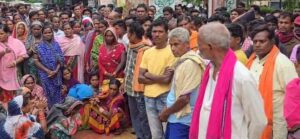 କୋରୁକୋଣ୍ଡା ଠାରେ ଚାଷୀଙ୍କ ଧାନ ବସ୍ତା ରଖି ରାସ୍ତାରୋକ ।