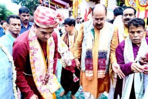 At about 4.30 p.m. Minister of Delhi Government Kapil Mishra and Former Judge of the Supreme Court Justice Arijit Pasayat did the traditional Chherapahanra. Secretary of the Temple Management Committee Sree Neelachal Seva Sangha and noted Philanthropist Rabindra Nath Pradhan helped them in performing the job. At around 5.00 p.m. amidst the Kirtan and singing of Bhajans and Jananas the chariot was pulled till Shri Aurobindo Place market in the Shri Jagannath Marg and then was returned back to the temple premises.