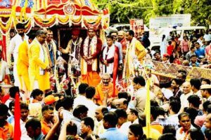 The view of the Trinity in a majestic style from atop the Royal Chariot during their sojourn on the street of Delhi was momentous and mesmerising. After completion of the return Journey, the Deities remained on the chariot for Public viewing. In late night all the Four Deities were taken in a procession to the Natyamandap and were placed there. As informed by the Temple sources, Deities will remain at Natyamandap till the date of Niladribije on 8th July 2025.