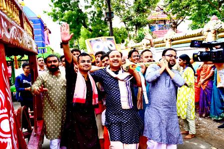 Then she was pacified and granted permission to the deities to get in. This Episode was enacted during the occasion in the Temple premises. The Idols were then taken inside the Temple by the servitors and devotees performing Dhadi Pahandi and placed on the Sanctum Santorum at around 8.30 p.m. This year’s Bahuda Yatra was well organised and smoothly conducted under the able and active guidance of the custodians of the Temple Management Committee like President Purandar Mishra, Members Manmath Kumar Raut, Subrat Sahoo, Subhaash Agrawal, Gopal Agrawal, Dwarikadheesh Mishra, Gunanidhi Mishra, Prakash Das, Ashok Dubey and Lalit Pradhan. All BJP leaders and workers of Raipur City North constituency including women, youth and corporators have helped and co-operated for the thumping success of Bahuda Yatra.