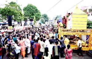 ଉପସ୍ଥିତ ଭକ୍ତମାନଙ୍କର ହରିବୋଲ, ହୁଳହୁଳି, ଜୟ ଜଗନ୍ନାଥ ଧ୍ବନି ଏବଂ ଶଙ୍ଖ, ଘଣ୍ଟ, କରତାଳ, ମର୍ଦ୍ଦଳ, ଝାଞ୍ଜ ଓ ମୃଦଙ୍ଗ ବାଜଣାର ଗହ ଗହ ନାଦ ତଥା ଭଜନ, କୀର୍ତ୍ତନର ମୃଦ୍ୟୁମନ୍ଦ ଆବାଜ ମଧ୍ୟରେ ମନ୍ଦିର ବେଢା ସାମନାରେ ରାଜକୀୟଠାଣିରେ ମହାପ୍ରଭୁ ଶ୍ରୀ ଜଗନ୍ନାଥ ତାଙ୍କର ବଡ଼ ଭାଇ ଶ୍ରୀ ବଳଭଦ୍ର ଏବଂ ଭଉଣୀ ଦେବୀ ସୁଭଦ୍ରାଙ୍କର ରଥ ଗୁଡ଼ିକ ଗଡି ଗଡି ଚାଲିବାର ଦୃଶ୍ୟ ଅନନ୍ୟ ଓ ଅଭୁଲା ଥିଲା। ସନ୍ଧ୍ୟା ୬ଟା ସୁଦ୍ଧା ବେଢ଼ା ଚତୁଃପାର୍ଶ୍ୱ ଭ୍ରମଣ କରି ରଥ ଗୁଡ଼ିକ ମୁଖ୍ୟ ମନ୍ଦିର ସାମ୍ନାକୁ ଆସିଯାଇଥିଲା। ଏଠାରେ ଋଷି ଥିବା ମହାଲକ୍ଷ୍ମୀ ପୂର୍ବରୁ ପ୍ରସ୍ତୁତ ଥାଇ ବଡ଼ ଠାକୁରଙ୍କ ମନ୍ଦିର ପ୍ରବେଶକୁ ରୋକି ଥିଲେ।