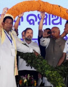 ଚାଷୀ, ଶ୍ରମିକ ସମେତ ସମସ୍ତ ଗରିବଙ୍କ ବିକାଶ ଦରକାର। ଯାହା କେବଳମାତ୍ର କଂଗ୍ରେସ ଦଳ କ୍ଷମତାକୁ ଆସିଲେହିଁ କରି ପାରିବ। ପୁରା ଦେଶରେ ନୂଆ କୃଷି ବୀମା ଲାଗୁ କରିବା କଥା କହିଲେ, ହେଲେ ସେ ପଇସା ନିଜର ଚାରିଟି ବଡ଼ କମ୍ପାନୀକୁ ଦେଇଦେଲେ । ଏବେ ବନ୍ୟା, ବାତ୍ୟା ଭଳି ବିପର୍ଯ୍ୟୟ ହେଲେ ଆବଶ୍ୟକ କ୍ଷତିପୂରଣ ମିଳୁନି। ବୀମା ଯୋଜନା ପଇସା ମିଳୁନି, କର୍ପୋରେଟ ହାତରେ ଟେକି ଦିଆଯାଉଛି। ଦେଶର ସମ୍ବିଧାନ ଗରିବଙ୍କର ରକ୍ଷା କରେ । ହେଲେ ବିଜେପି ଅମ୍ବାନୀ, ଅଦାନୀଙ୍କୁ ରକ୍ଷା କରୁଛି । ଓଡିଶା ହେଉ କି ଛତିଶଗଡ଼, ସବୁ ରାଜ୍ଯରେ କେବଳ ଅଦାନୀ, ଅଦାନୀ ଜପୁଛନ୍ତି । ବିଜେପି ଜପୁଛି ଅଦାନୀ, ଅଦାନୀ, ଆଦାନୀ । ରାଜ୍ୟର କୋଟି, କୋଟି ଲୋକଙ୍କ ଭାବନାରେ ଜଡିତ ପବିତ୍ର ରଥଯାତ୍ରା । ହେଲେ ଏହି ରଥଯାତ୍ରାର କେବଳ ଅଦାନୀ ପରିବାର ପାଇଁ ସାମୟିକ ରୋକି ଦିଆଗଲା ।