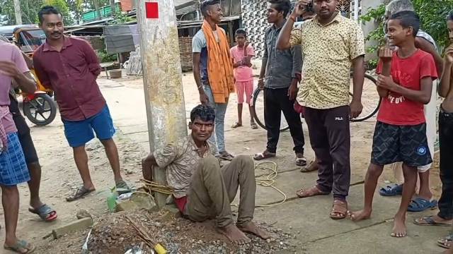 ◆ ବିଦ୍ୟୁତ୍ ଖୁଣ୍ଟରେ ବାନ୍ଧିଲେ ଗ୍ରାମବାସୀ