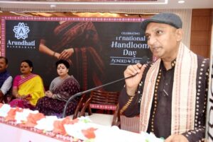 ଭୁବନେଶ୍ବର (ଓଡ଼ିଶା ତାଜା ନ୍ୟୁଜ୍) :- ଅରୁନ୍ଧତୀ ବାନ୍ଧକଳା ପକ୍ଷରୁ ଗତ ୭ ଅଗଷ୍ଟ ୨୦୨୫ରିଖ ଜାତୀୟ ହସ୍ତତନ୍ତ ଦିବସ ଓ ରକ୍ଷାବନ୍ଧନ ଉପଲକ୍ଷେ ଏକ ସ୍ବତନ୍ତ୍ର କାର୍ଯ୍ୟକ୍ରମ ଏହାର ଭୁବନେଶ୍ବର ଶଖାଠାରେ ଅନୁଷ୍ଠିତ ହୋଇଯାଇଛି l ଏହି କାର୍ଯ୍ୟକ୍ରମରେ NIFT ନିର୍ଦ୍ଦେଶକ ଶ୍ରୀଯୁକ୍ତ ରାଜେଶ ଝା ମୁଖ୍ୟ ଅତିଥ୍ ବିଶିଷ୍ଟ ସମାଜସେବୀ ମୀରା ପରିଡା ଓ ଅନୁଶ୍ରୀ ଦାଶ ସମ୍ମାନିତ ଅତିଥି ଭାବେ ଯୋଗଦାନ କରିଥିଲେ l