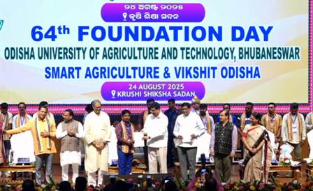 ରାମାନାଗୁଡ଼ା (ଓଡ଼ିଶା ତାଜା ନ୍ୟୁଜ୍) :- ଓଡ଼ିଶା କୃଷି ଓ ବୈଷୟିକ ବିଶ୍ଵବିଦ୍ୟାଳୟ ର ୬୪ତମ ପ୍ରତିଷ୍ଠା ଦିବସ ଭୁବନେଶ୍ୱର କୃଷି ଶିକ୍ଷା ଶାସନ ଠାରେ ଅନୁଷ୍ଠିତ ହୋଇଯାଇଛି । କାର୍ଯ୍ୟକ୍ରମ ରେ ମୁଖ୍ୟ ଅତିଥି ରୂପେ ମହାମହିମ ରାଜ୍ୟପାଳ ହରିବାବୁ କମ୍ଭମପତି,ସମ୍ମାନିତ ଅତିଥି ରୂପେ କୃଷି ମନ୍ତ୍ରୀ କନକ ବର୍ଦ୍ଧନ ସିଂହଦେଓ,ପଶୁ ସମ୍ପଦ ବିକାଶ ମନ୍ତ୍ରୀ ଗୋକୁଳ ନନ୍ଦ ମଲ୍ଲିକ,ଅଧ୍ୟକ୍ଷ ପ୍ରସନ୍ନ ଜିତ୍ ମିଶ୍ର,କୁଳପତି ପ୍ରଫେସର କେ ରାଉଳ ପ୍ରମୁଖ ମଞ୍ଚାସିନ ଥିଲେ।ଏହି ଅବସର ରେ ବିଭିନ୍ନ ଚାଷ ରେ ସଫଳତା ହାସଲ କରିଥିବା ପ୍ରଗତିଶୀଳ କୃଷକ ଙ୍କୁ ରାଜ୍ୟପାଳ ଙ୍କ ଦ୍ଵାରା ସମ୍ବର୍ଦ୍ଧିତ କରାଯାଇଥିଲା ।