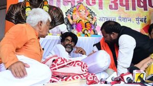 Mumbai (Odisha Tazanews) Mumbai :-> Maratha quota activist Manoj Jarange-Patil ended his indefinite fast on Tuesday evening, the fifth day of his agitation at Azad Maidan, after Maharashtra minister Radhakrishna Vikhe-Patil handed him a copy of the government resolution (GR) accepting his demands.