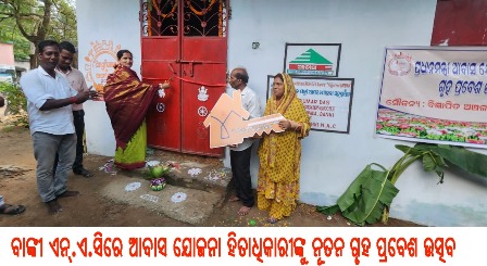 ବାଙ୍କୀ (ଓଡ଼ିଶା ତାଜା ନ୍ୟୁଜ୍) (ନି.ପ୍ର ) ବାଙ୍କୀ :- ପ୍ରଧାନମନ୍ତ୍ରୀ ଆବାସ ଯୋଜନା (ସହରାଞ୍ଚଳ)ରେ ଯେଉଁ ଯୋଗ୍ୟ ହିିତାଧିକାରୀମାନେ କାର୍ଯ୍ୟାଦେଶ ପାଇ ନିଜର ପକ୍କାଘର ସମ୍ପୂର୍ଣ୍ଣ କରିଛନ୍ତି ସେମାନଙ୍କୁ ଏକ ସ୍ୱତନ୍ତ୍ରୀ ଉତ୍ସବ ଆୟୋଜନ କରାଯାଇ ନୂତନ ଘରେ ହିତାଧିକାରୀଙ୍କୁ ଗୃହ ପ୍ରବେଶ କରାଯାଇଛି । ବିଭିନ୍ନ ୱାର୍ଡରୁ ଚୟନ ହୋଇଥିବା ୧୦ଜଣ ଆବାସ ଯୋଜନା ହିତାଧିକାରୀକୁ ନଗରପାଳ ଶ୍ରୀମତୀ ମାଣିକ ସାହୁ ମୁଖ୍ୟଅତିଥି ଭାବେ ଯୋଗଦେଇ ସ୍ଥାନୀୟ କାଉନସିଲମାନଙ୍କ ଉପସ୍ଥିତି ଓ ଏନ୍.ଏ.ସି କର୍ମଚାରୀମାନଙ୍କ ଉପସ୍ଥିତିରେ ଗୃହ ପ୍ରବେଶ କରାଇଥିଲେ ।