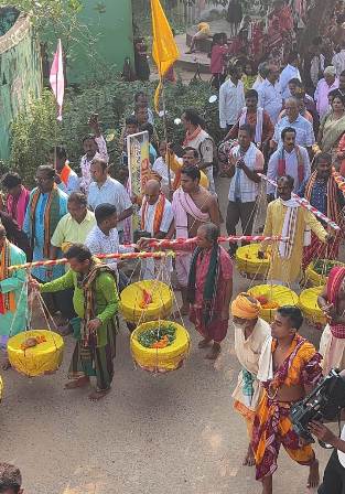 ସେହି ଅନୁସାରେ ଆଜି ସକାଳେ ଶ୍ରୀମାଧବଙ୍କ ସ୍ନାନ ଓ ମାର୍ଜନା ପରେ ମହାପ୍ରଭୁଙ୍କୁ ରାଜାରାଜେଶ୍ଵର ବେଶରେ ସୁସଜ୍ଜିତ କରାଯିବା ପରେ, ମାଧବଙ୍କ ମନ୍ଦିରରୁ ଭାର ଶୋଭାଯାତ୍ରା ଆରମ୍ଭ ହୋଇଥିଲା , ଆଗେଆଗେ ଭୋଇସେବକମାନେ ପତାକା ଧରି ଶୋଭାଯାତ୍ରାରେ ସାମିଲ ହୋଇଥିଲା ବେଳେ ଏଥିସହ ପାଇକ ଆଖଡ଼ା, ରାମତାଳି, ଲଉଡ଼ି ଖେଳ ପ୍ରଦର୍ଶନ କରାଯାଇଥିଲା | ଶ୍ରୀଜିଉଙ୍କ ଅଙ୍ଗଲାଗି ଖଣ୍ଡୁଆ ବସ୍ତ୍ର, ବିଭିନ୍ନ ଫଳମୂଳ, ତୁଳସୀ, ପଦ୍ମଫୁଲ ମାଳ ସହ ପୋଢୁଆଁ ଭୋଗ ନିମନ୍ତେ ଅରୁଆ ଚାଉଳ, ବିରି, ନଡ଼ିଆ, ଗୁଡ଼, ଡାଲି, ପାଚିଲା କଦଳୀ,
