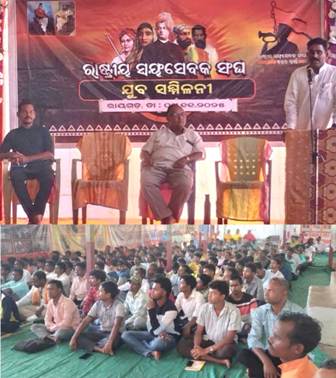 ପାରଳାଖେମୁଣ୍ଡି (ଓଡ଼ିଶା ତାଜା ନ୍ୟୁଜ୍) ନି.ପ୍ର :- ଗଜପତି ଜିଲ୍ଲା ରାୟଗଡ ବ୍ଲକ ସଦରମହକୁମା ସ୍ଥିତ ଜଗନ୍ନାଥ ମନ୍ଦିର ପରିସରରେ ରାଷ୍ଟ୍ରୀୟ ସ୍ବୟଂସେବକ ସଙ୍ଘର ଶତାବ୍ଦୀ ବର୍ଷ ଅବସରରେ ଯୁବ ସମ୍ମିଳନୀ ଅନୁଷ୍ଠିତ ହୋଇଯାଇଛି ।ଉକ୍ତ କାର୍ଯ୍ୟକ୍ରମରେ ମୁଖ୍ୟ ଅତିଥ୍ ଭାବେ ଜିଲ୍ଲା ସଙ୍ଘ ଚାଳକ ରାଧାକୃଷ୍ଣ ଜାନି , ମୁଖ୍ୟବକ୍ତା ଭାବେ ଓଡିଶା ପ୍ରାନୁ ମହାବିଦ୍ୟାଳୟ ପ୍ରମୁଖ ମନୋରଞ୍ଜନ ପ୍ରଧାନ, ସମ୍ମାନୀତ ଅତିଥି ଭାବେ ସଂଘ ସହ ବିଭାଗ କାର୍ଯ୍ୟ ବାହ ଜୁରିଆ ଜାନି ଓ ଯୁଧିଷ୍ଠିର ସାହୁ ପ୍ରମୁଖ ଯୋଗଦେଇ ଭାରତରେ ସଙ୍ଘର କର୍ତ୍ତବ୍ୟ ସମ୍ପର୍କରେ ବକ୍ତବ୍ୟ ରଖୁଥିଲେ ।