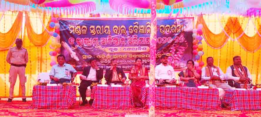 କେନ୍ଦ୍ରାପଡ଼ା (ଓଡ଼ିଶା ତାଜା ନ୍ୟୁଜ୍) :- ଡେରାବିଶ ବ୍ଲକ ଅନ୍ତର୍ଭୁକ୍ତ କୁରୁଜଙ୍ଗା ଆଦର୍ଶ ବିଦ୍ୟାଳୟ ପରିସରରେ ଆଜି ଡେରାବିଶ ମଣ୍ଡଳ ସ୍ତରୀୟ ବାଲ୍ ବୈଜ୍ଞାନିକ ପ୍ରଦର୍ଶନୀ ଓ ରାଷ୍ଟ୍ରୀୟ ଆବିଷ୍କାର ଅଭିଯାନ ୨୦୨୫-୨୬ ଆଜି ଡେରାବିଶ ବ୍ଲକ ଅନ୍ତର୍ଗତ କୁରୁଜଙ୍ଗା ସ୍ଥିତ ଆଦର୍ଶ ବିଦ୍ୟାଳୟ ପରିସରରେ ଅନୁଷ୍ଠିତ ହୋଇଯାଇଛି । ଏହି ଉପଲକ୍ଷେ ଡେରାବିଶ ମଣ୍ଡଳ ଶିକ୍ଷାକାରୀ ନାରୟଣ ପ୍ରସାଦ ମନ୍ତ୍ରୀଙ୍କ ସଭାପତିତ୍ୱରେ ଅନୁଷ୍ଠିତ ଉଦ୍ଘାଟନୀ ସଭାରେ ମୁଖ୍ୟ ଅତିଥିଭାବେ କେନ୍ଦ୍ରାପଡ଼ା ଜିଲ୍ଲାପାଳ ରଘୁରାମ ଆର ଆୟାର ଯୋଗଦେଇ ପ୍ରଦୀପ ପ୍ରଜ୍ଜ୍ଵଳନ ପୂର୍ବକ କାର୍ଯ୍ୟକ୍ରମକୁ ଶୁଭାରମ୍ଭ, କରିଥିଲେ ।