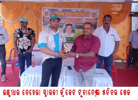 ବାଙ୍କୀ (ଓଡ଼ିଶା ତାଜା ନ୍ୟୁଜ୍) ନି. ପ୍ର :- ବଙ୍କୀ କଚେରୀ ପଡିଆ ଠାରେ ଚାଲିଥିବା ଲକ୍ଷ୍ମୀଧର ବେହେରା ସ୍ମାରକୀ କ୍ରିକେଟ ଟୁର୍ଣ୍ଣାମେଣ୍ଟର ୫ମ ଦିବସର ପ୍ରଥମ ଖେଳ ବାଙ୍କୀ ଆଥେଲେଟିକ୍ ଆସୋସିଏସନ୍ ସହିତ ପାନବରଜ ଦଳ ମଧ୍ୟରେ ହୋଇଥିଲା । ଏଥିରେ ବାଙ୍କୀ ଆଥେଲେଟିକ୍ ଆସୋସିଏସନ୍ ବିଜୟ ହୋଇଥିବା ବେଳେ ଏହି ଦଳର ସୁବାସ ଖଟୁଆ ମ୍ୟାନ୍ ଅଫ୍ ଦି ମ୍ୟାଚ୍ ବିବେଚିତ ହୋଇଥିଲେ । ଦ୍ୱିତୀୟ ମ୍ୟାଚରେ ବେଗୁନିଆ ଅଠାରଙ୍ଗ ସହିତ ଗୁରୁଜଙ୍ଗ ମଧ୍ୟରେ ଖେଳ ଅନୁଷ୍ଠିତ ହୋଇଥିଲା ।