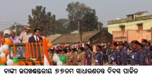 ବାଙ୍କୀ (ଓଡ଼ିଶା ତାଜା ନ୍ୟୁଜ୍) (ନି. ପ୍ର ) :- ବାଙ୍କୀ ଉପଖଣ୍ଡରେ କଚେରୀ ପଡିଆ ଠାରେ ୭୭ତମ ସାଧାରଣତନ୍ତ୍ର ଦିବସ ମହାସମାହୋରରେ ପାଳିତ ହୋଇଯାଇଛି । ବାଙ୍କୀ ଉପଜିଲ୍ଲା ପାଳ ପ୍ରଣବ କୁମାର ବେହେରା ସକାଳ ୮ଘଣ୍ଟା ୪୫ମିନିଟ୍ ସମୟରେ କଚେରୀ ପଡିଆ ଠାରେ ଆୟୋଜିତ ଉତ୍ସବରେ ମୁଖ୍ୟ ଅତିଥି ଭାବେ ଯୋଗଦେଇ ଜାତୀୟ ପତାକା ଉତ୍ତୋଳନ କରିବା ସହିତ ମିଳିତ ପ୍ୟାରେଡରେ ଅଭିବାଦନ ଗ୍ରହଣ କରି କହିଲେ ଯେ ଜାତିର ପିତା ମହାତ୍ମା ଗାନ୍ଧୀ, ପଣ୍ଡିତ ନେହୁର, ନେତାଜୀ ସୁବାଷ ଚନ୍ଦ୍ର ବୋଷ , ସର୍ଦ୍ଦାର ପଟେଲ, ମୌଲାନା ଆଜାଦ୍ , ଡ.ବିଆର ଆମ୍ବେଦକର, ଡ.ରାଜେନ୍ଦ୍ର ପ୍ରସାଦ,