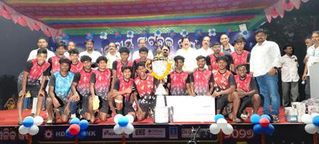 ବୋଲଗଡ (ଓଡ଼ିଶା ତାଜା ନ୍ୟୁଜ୍) (ନି. ପ୍ର ) :- ଖୋର୍ଦ୍ଧା ଜିଲ୍ଲା ବୋଲଗଡ ବ୍ଲକ୍ ଅନ୍ତର୍ଗତ ଗୋପାଳପୁର ପଞ୍ଚାୟତର ତୁଳସୀବେରେଣ ଖେଳ ପଡିଆରେ, ସାତ ଦିନ ଧରି ଚାଲିଥିବା ସର୍ବ ଭାରତୀୟ ଫୁଟବଲ୍ ଟୁର୍ଣ୍ଣାମେଣ୍ଟର ଫାଇନାଲ ଦିବସରେ ଭଞ୍ଜନଗର ଫୁଟବଲ ଏକାଡେମୀ ୨/୧ ଗୋଲରେ ବିଜୟୀ ହୋଇ ଚମ୍ପିୟାନ ଟ୍ରଫି ସହ ନଗଦ ୩୦ ହଜାର ଟଙ୍କା ପୁରସ୍କାର ରାଶି ଓ ରନରସପ୍ ବଲାଙ୍ଗୀର ଦଳ ନଗଦ ୨୦ ହଜାର ଟଙ୍କା ସହ ଟ୍ରଫି ହାସଲ କରିଥିବା ଜଣା ପଡିଛି ।