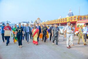 ରାଜ୍ୟପାଳ ଡ. ହରିବାବୁ କମ୍ଭମପାଟି, ମୁଖ୍ୟମନ୍ତ୍ରୀ ମୋହନ ଚରଣ ମାଝୀ,ଉପ ମୁଖ୍ୟମନ୍ତ୍ରୀ ପ୍ରଭାତୀ ପରିଡା, ପିପିଲି ବିଧାୟକ ଆଶ୍ରିତ ପଟ୍ଟନାୟକ, ସତ୍ୟବାଦୀ ବିଧାୟକ ଓମ ପ୍ରକାଶ ମିଶ୍ର,ପୁରୀ ବିଧାୟକ ସୁନୀଲ କୁମାର ମହାନ୍ତି, ବ୍ରହ୍ମଗିରି ବିଧାୟିକା ଉପାସନା ମହାପାତ୍ର,ଶ୍ରୀମନ୍ଦିର ମୁଖ୍ୟ ପ୍ରଶାସକ ଡଃ ଅରବିନ୍ଦ କୁମାର ପାଢୀ,ପୁଲିସ ଆଇଜି ଅରୁଣ କୁମାର ସାହୁ,ଜିଲ୍ଲାପାଳ ଦିବ୍ୟ ଜ୍ୟୋତି ପରିଡା,ଏସପି ପ୍ରତୀକ ସିଂ ପ୍ରମୁଖ ରାଷ୍ଟ୍ରପତି ଙ୍କୁ ସ୍ବାଗତ କରିଥିଲେ ।