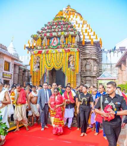 ପରେ ରାଷ୍ଟ୍ରପତି ଚାଲି ଚାଲି ଶ୍ରୀମନ୍ଦିର କାର୍ଯ୍ୟାଳୟ ପର୍ଯ୍ୟନ୍ତ ଯିବା ସହ ପିଲା ମାନଙ୍କୁ ଚକଲେଟ ବଣ୍ଟନ କରିଥିଲେ । ଏହାପରେ ରାଷ୍ଟ୍ରପତି ଲୋକଭବନରେ ପହଞ୍ଚି କିଛି ସମୟ ବିରତି ପରେ ହେଲିପ୍ୟାଡ ଅଭିମୁଖେ ପ୍ରସ୍ଥାନ କରିଥିଲେ । ସେଠାରୁ ସ୍ବତନ୍ତ୍ର ବିମାନ ଯୋଗେ ମୟୂରଭଞ୍ଜ ର ରାଇରଙ୍ଗପୁର ଅଭିମୁଖେ ଯାତ୍ରା କରିଥିଲେ ।