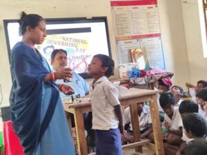 କୃମି ମୁକ୍ତ ଶିଶୁ ହେଉଛନ୍ତି ରୋଗ ମୁକ୍ତ ଶିଶୁ ତେଣୁ ୧ ବର୍ଷରୁ ୧୯ବର୍ଷର ସମସ୍ତ ଶିଶୁଙ୍କୁ ଆଲବେଣ୍ଡାଜୋଲ ବଟିକା ମାଗଣାରେ ସରକାରଙ୍କ ତରଫରୁ ଫେବୃଆରୀ୧୦ ତାରିଖ ଜାତୀୟ କୃମି ନାଶକ ଦିବସ ଅବସରରେ ବିଦ୍ୟାଳୟର ୭୭ଜଣ ଛାତ୍ରଛାତ୍ରୀ ମାନଙ୍କୁ ବଟିକା ଖାଇବାକୁ ଦିଆଯାଇଥିଲା