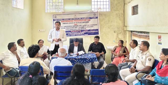 ଗିନି ଲକ୍ଷ୍ମଣ ରେଡ୍ଡୀ ତଥା ପାରଳାଖେମୁଣ୍ଡି ସ୍ଥିତ ଜଷ୍ଟିସ କର୍ଣ୍ଣର ଚାରିଟେବଲ ଟ୍ରଷ୍ଟର ସମାଜସେବୀ ଜଗନ୍ନାଥ ଚୌଧୁରୀ ପ୍ରମୁଖ ଉପସ୍ଥିତ ରହି ପ୍ରବାସୀ ଶ୍ରମିକ ତଥା ଶିଶୁ ସୁରକ୍ଷାକୁ ନେଇ ରହିଥିବା ଆଇନର ବିଭିନ୍ନ ଦିଗ ବିଷୟରେ ତର୍ଜମା କରିବା ସହ ଜାତୀୟ ଆଇନ ସେବା କର୍ତ୍ତୃପକ୍ଷ (ନାଲସା)ଙ୍କ ଆଇନ ସଚେତନତା ଯୋଜନାଗୁଡ଼ିକ ବିଷୟରେ ସାଧାରଣ ଜନତାଙ୍କୁ ସଚେତନ କରିଥିଲେ। ବିଶେଷକରି ପ୍ରବାସୀ ଶ୍ରମିକଙ୍କ ନିମନ୍ତେ ରହିଥିବା ସରକାରଙ୍କର ବିଭିନ୍ନ ଯୋଜନା ତଥା ପଞ୍ଜିକରଣ,