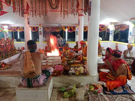 ରବିବାର ଅଗ୍ନି ସ୍ଥାପନ, ଅଗ୍ନି ସଂସ୍କାର, ପିଠେ ଦେବତା ଓ ପଞ୍ଚ ଦେବତା ଆହୁତି, ସୋମବାର ସୂର୍ଯ୍ୟ ପୂଜା, ଗୋ ପୂଜା, ରୁଦ୍ର ଅଷ୍ଟ ଧ୍ୟାଇ ଆହୁତି, ମଙ୍ଗଳବାର ଶ୍ରୀମଦ ଭଗବତ ଗୀତା ଆହୁତି, ବୁଧବାର ଶ୍ରୀ ଦୂର୍ଗା ସପ୍ତ ସତୀ ଚଣ୍ଡୀ ଆହୁତି, ଗୁରୁବାର ଫଗୁ ଦଶମୀ, ସୂର୍ଯ୍ୟ ପୂଜା, ବିଷ୍ଣୁ ସହସ୍ର ନାମ ଆହୁତି, ସର୍ବ ଦେବାଦେବୀ ଆହୁତି ଓ ପୂର୍ଣ୍ଣାହୁତି ପ୍ରଦାନ କରାଯାଇଥିଲା l କର୍ତ୍ତା ଭାବେ ସଚ୍ଚିଦାନନ୍ଦ ମିଶ୍ର ଓ କର୍ତ୍ତୀ ଭାବେ ତୃପ୍ତି ମୟୀ ଦାଶ କାର୍ଯ୍ୟ ସମ୍ପାଦନ କରିଥିଲେ l ପ୍ରତେହ ରାତ୍ରରେ ଭଜନ, ନୃତ୍ୟ, ପ୍ରବଚନ ଓ ଧର୍ମ ସଭା ଅନୁଷ୍ଠିତ ହୋଇଥିଲା l ଗୋପାଳ ଭାଇ ମାନଙ୍କ ଦ୍ୱାରା ଲଉଡ଼ି ପରିବେଷଣ କରାଯାଇଥିଲା l ଏଥିସହ ମୁକ୍ତ ରଙ୍ଗମଞ୍ଚ ନାଟକ ପରିବେଷଣ କରାଯାଇଥିଲା l